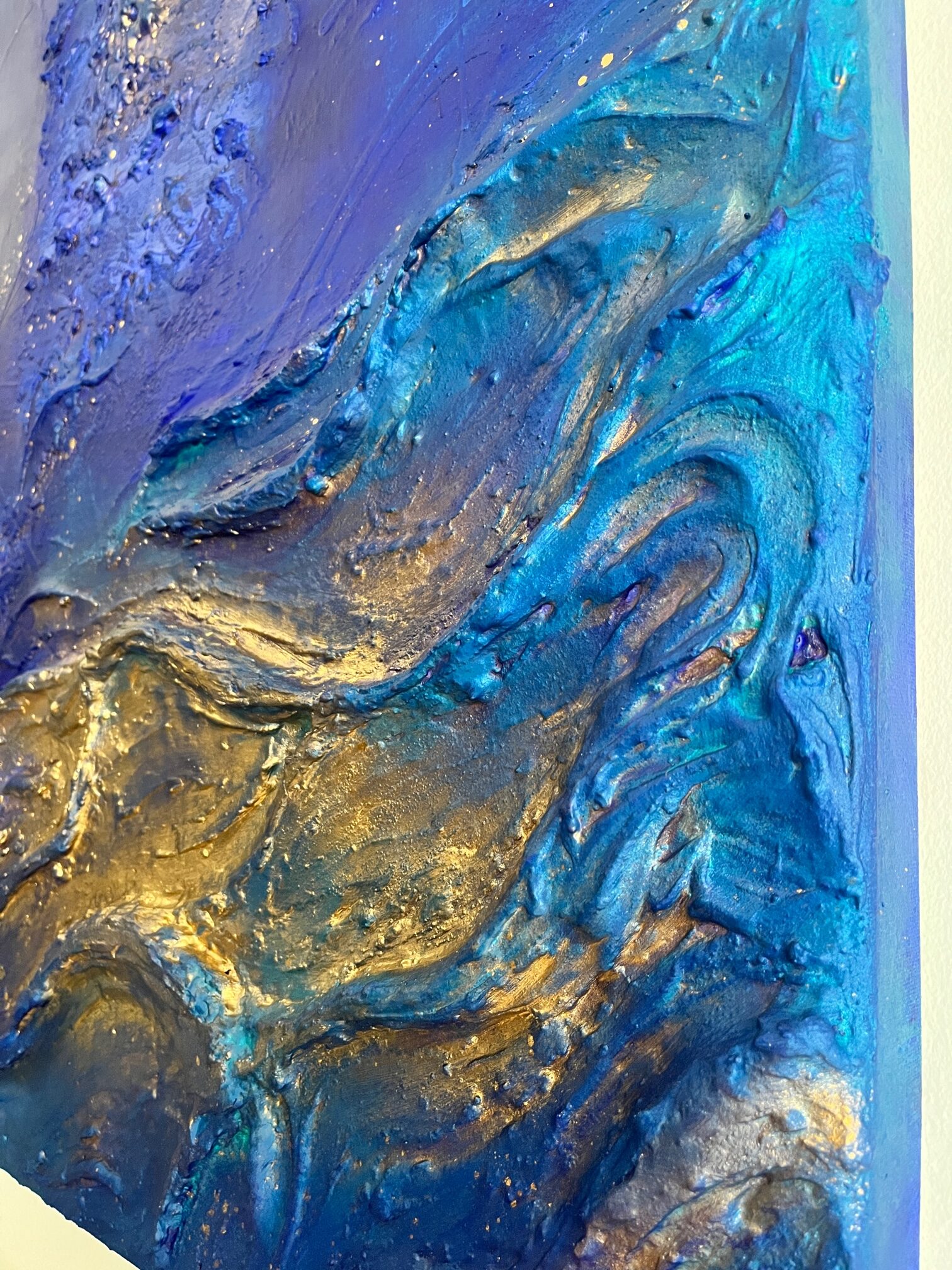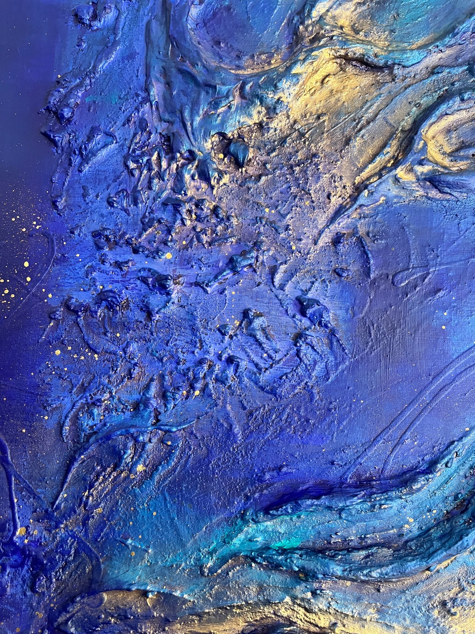 Thick texture and layers of acrylics on an 80cm x 80cm deep edge canvas.