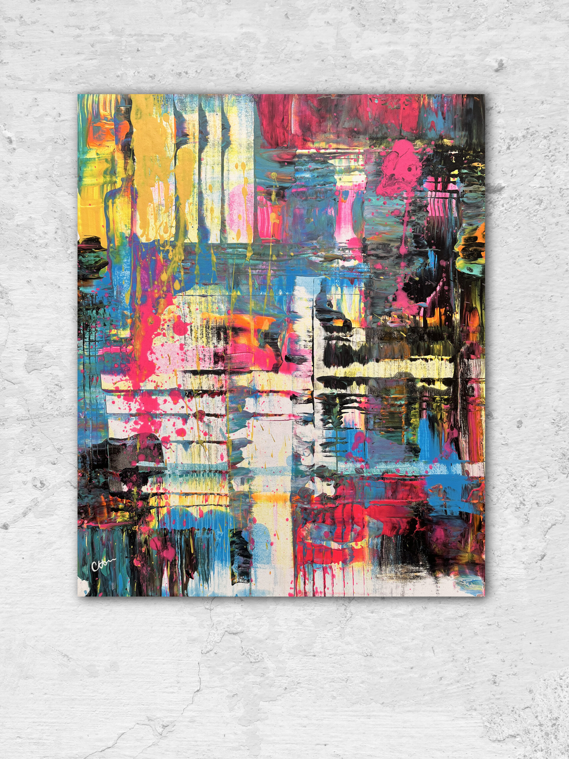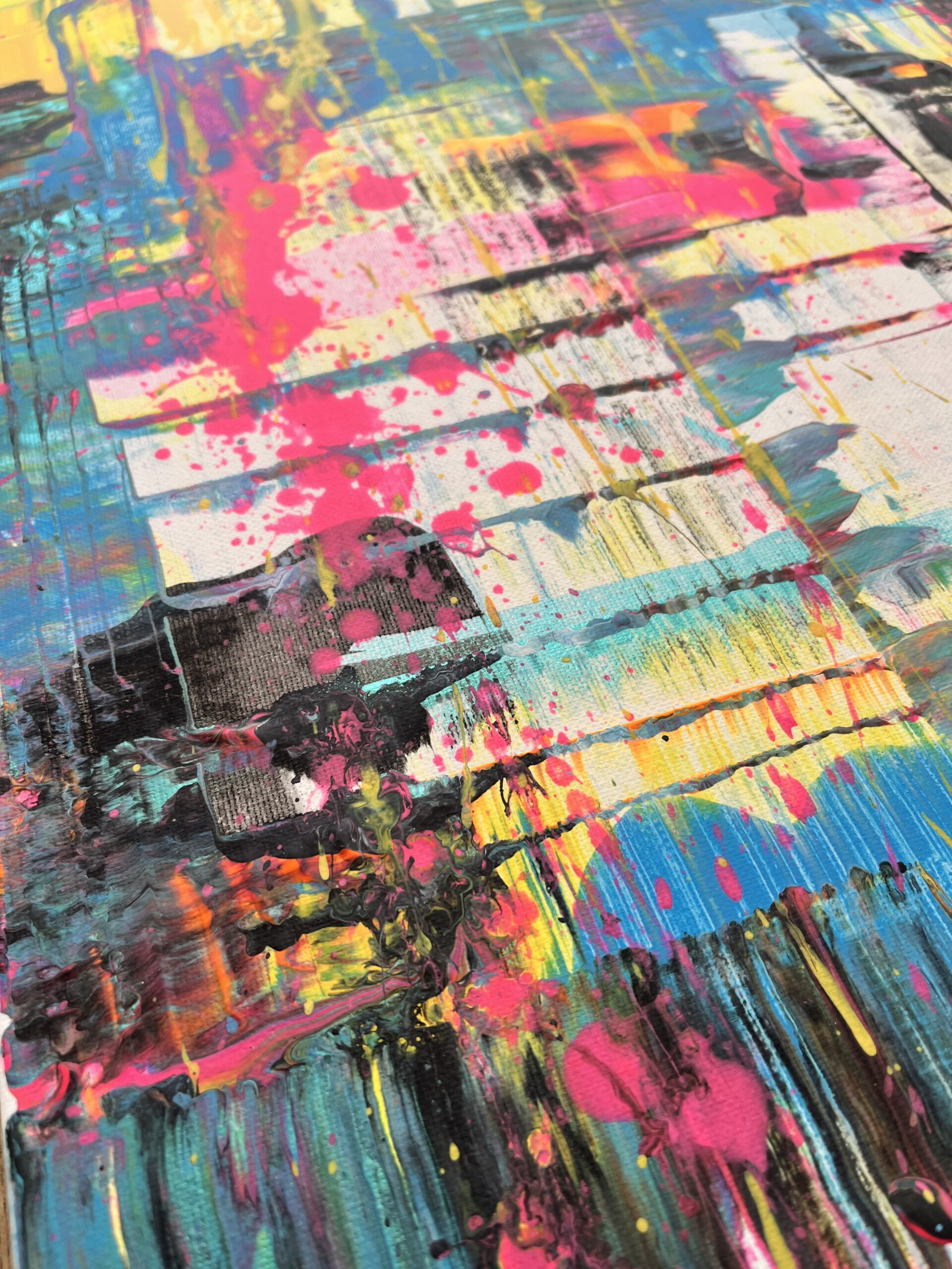 An urban feel, layered acrylic deep edge canvas measuring 46 x 56cm.