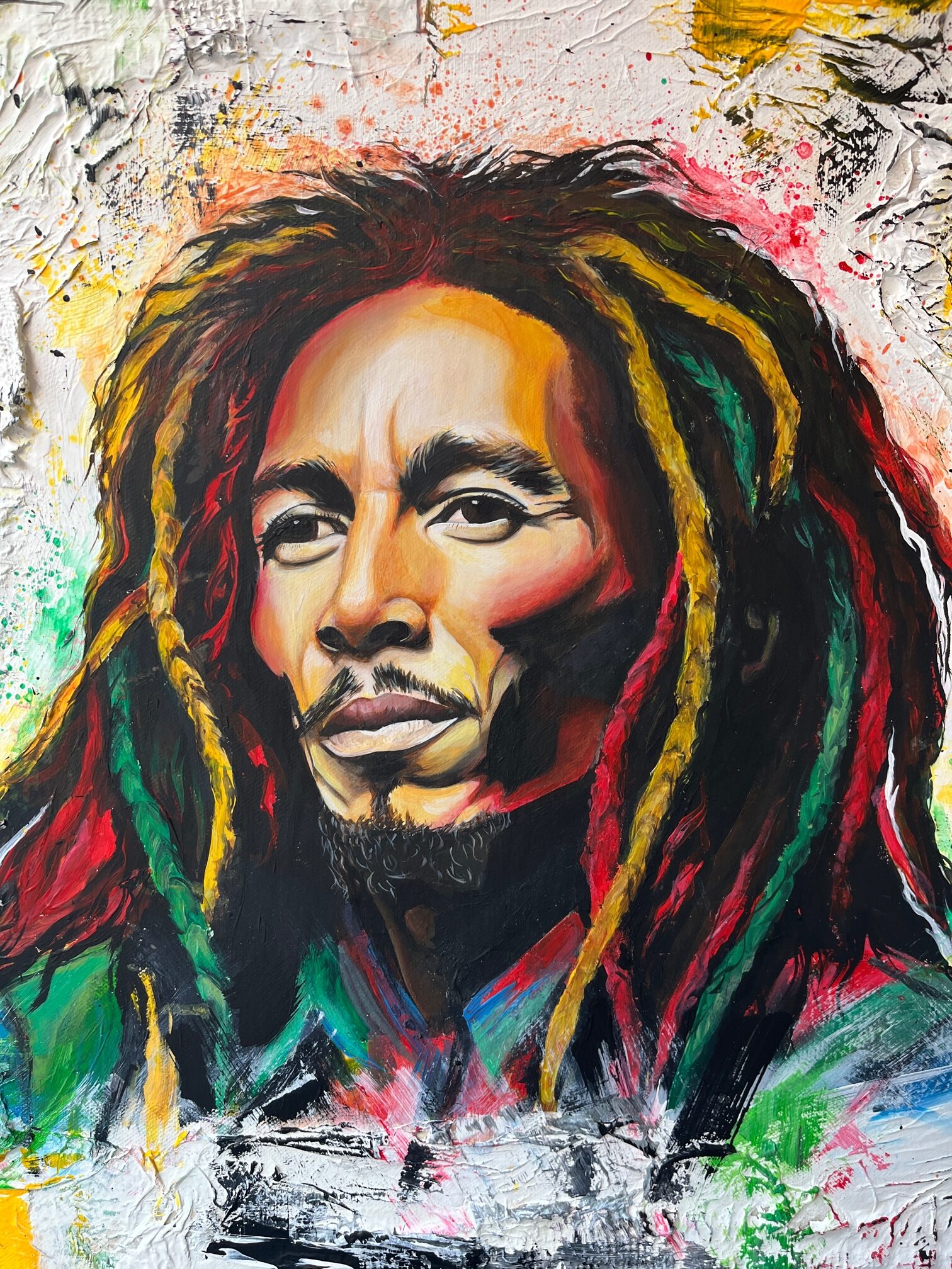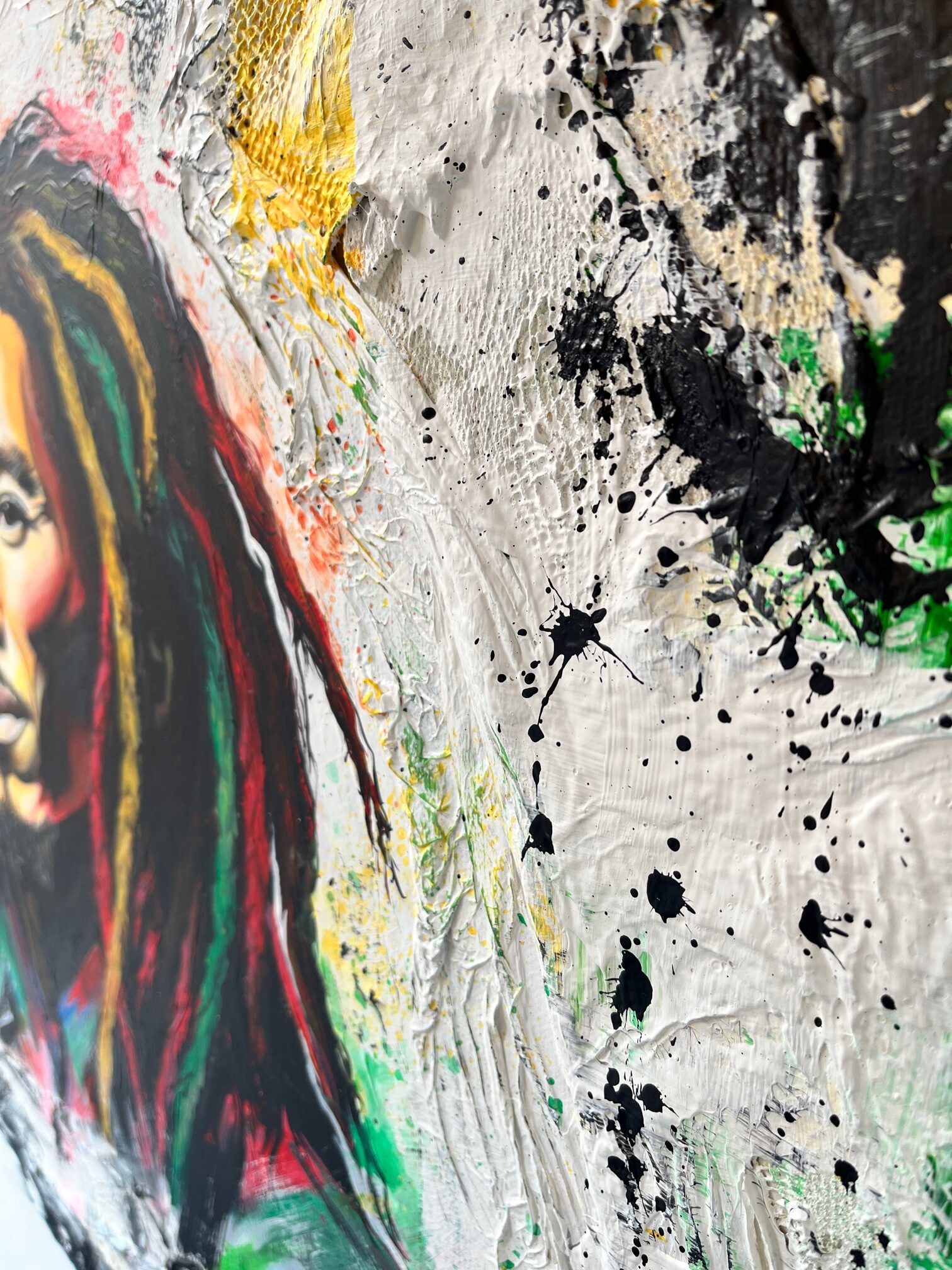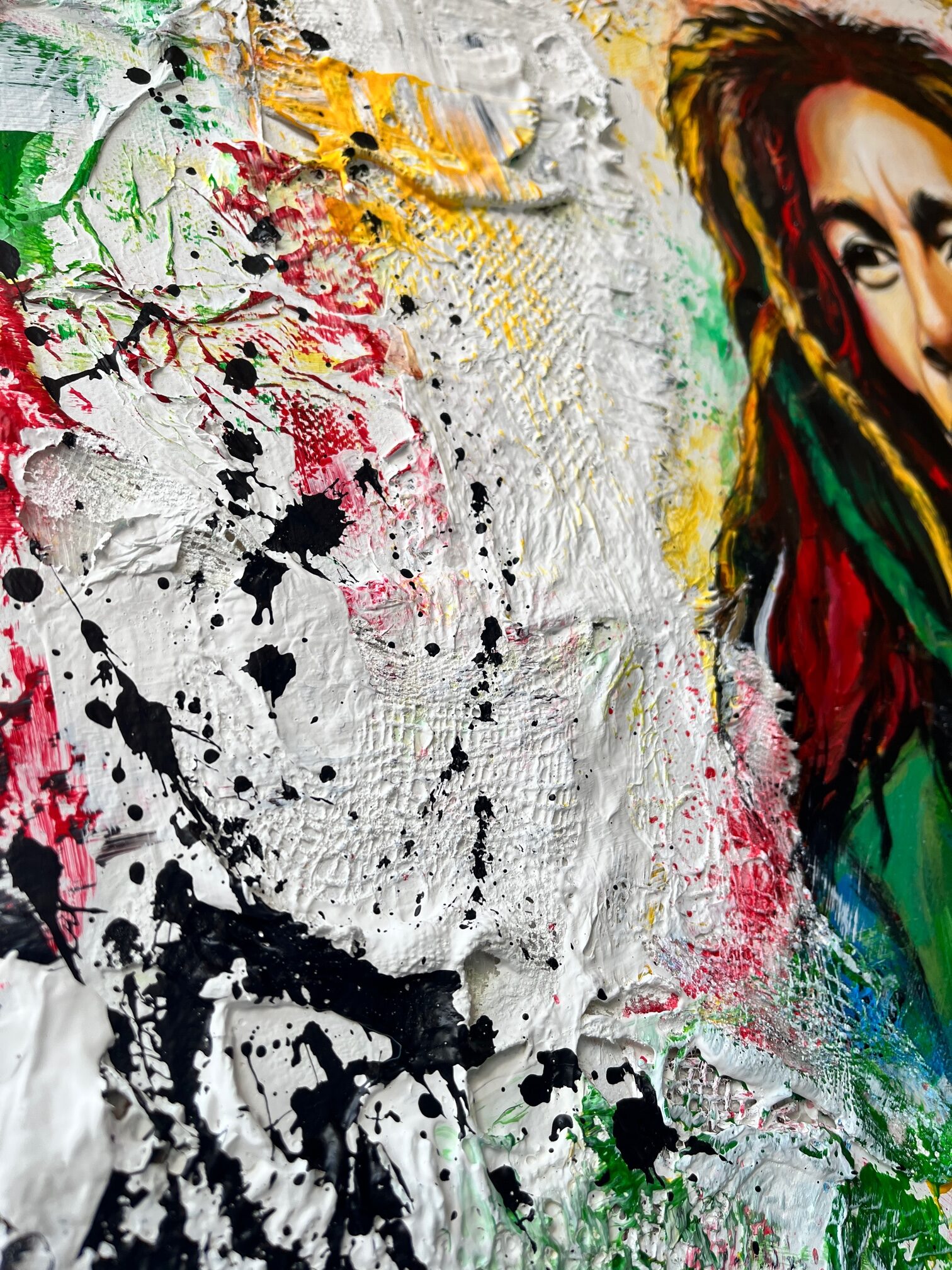 76 x 50cm textured Bob Marley portrait piece on a deep edge canvas.